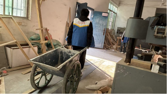 活动伊始,志愿者们在园林专业老师的细致指导下,领取手套、口罩等防护工具,迅速进入工作状态。现场分工明确、秩序井然:一组专注于空教室废旧木材的安全拆卸,精准把控拆卸力度与操作规范;一组负责转运多余砖块,两两配合高效清理场地杂物;其余小组则对各类园林工具、建筑器材进行分类整理与规范存放。尽管劳动过程中泥土沾满裤脚、汗水浸透衣襟,但同学们热情高涨、默契十足,没有一人抱怨退缩。大家在实践中亲身感受劳动的艰辛与价值,更从专业老师的指导中领略到建筑施工与场地规划的“匠心”所在,在互帮互助中交流实践经验,充分展现了团队协作的强大力量。