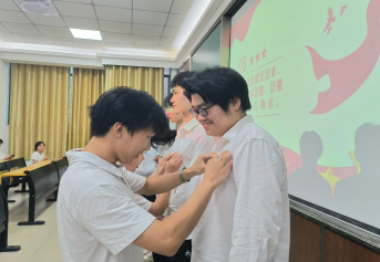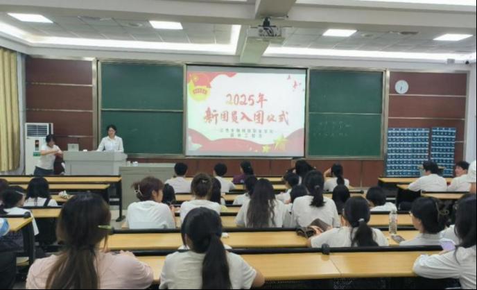 仪式在庄严的国歌声中开始。系团总支副书记宣读了新团员发展决定,优秀团员代表为新团员佩戴了团徽。随后,全体新团员面向团旗进行了庄严的入团宣誓,表达了坚定的理想信念。