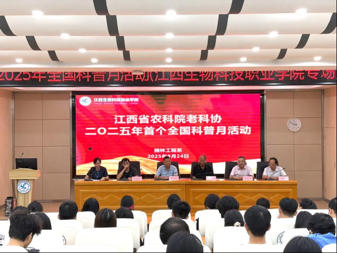 为弘扬科学精神、普及农业知识,助力乡村振兴人才培养,9月24日下午,我院园林工程系邀请江西省农业科学院老科协专家团队一行五人——陈大洲、黄建民、黄长林、李祖章、李湘民走进校园,为百余名师生带来一场生动详实的水稻科普讲座。此次活动由园林工程系主任主持,省老科协有关同志参加,系全国科普月“科学家宣讲进基层”系列活动之一。