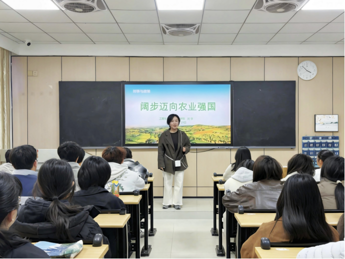 为深入贯彻落实《新时代高校思想政治理论课教学工作基本要求》,12月19日,学院党委委员、纪委书记刘宇以《阔步迈向农业强国》为题,为园林工程系学生讲授了一堂生动深刻的《形势与政策》课程。